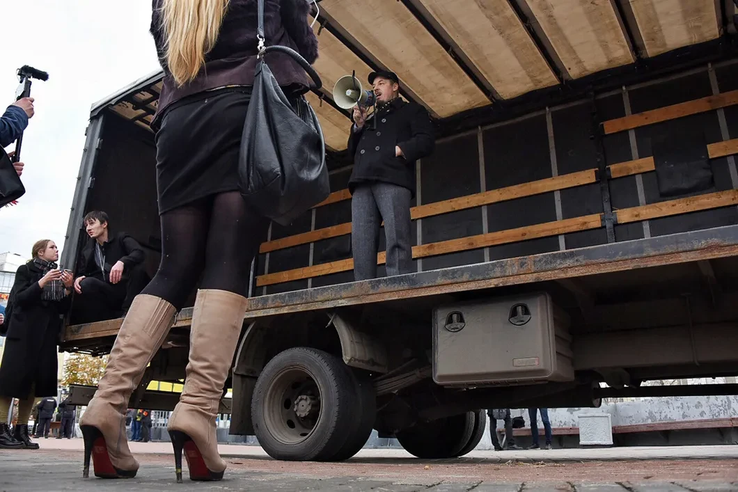 Черно-желто-белая толпа впереди меня говорит другие вещи. «Россия — это Европа» — почему-то читает со смартфона очередной лозунг активист.