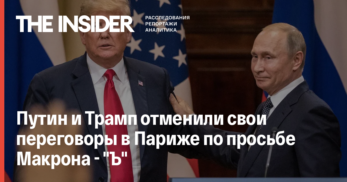 Полноформатная встреча Владимира Путина и Дональда Трампа в Париже сорвалась из-за обращения французского лидера Эммануэля Макрона. Об этом пишет «Коммерсантъ» со ссылкой на информированный европейский дипломатический источник.