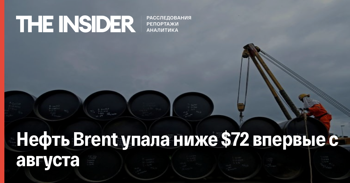 Cтоимость барреля нефти марки Brent снизилась на 2,5% и достигла $71,31, сообщает РБК. В последний раз цена барреля опускалась ниже $72 в августе.