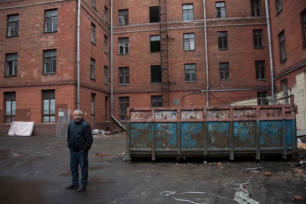 Борис Айрапетян выглядывает из окна второго этажа старенького корпуса гостиницы «Алтай» на северо-востоке Москвы. В красном свитере крупной вязки, с длинными волосами и черной с проседью бородой, Айрапетян похож на художника. Можно подумать, что за его спиной уютная студия. Что он только что положил кисть, отошел от мольберта, съел кусочек душистой бастурмы и пригубил гранатового вина.