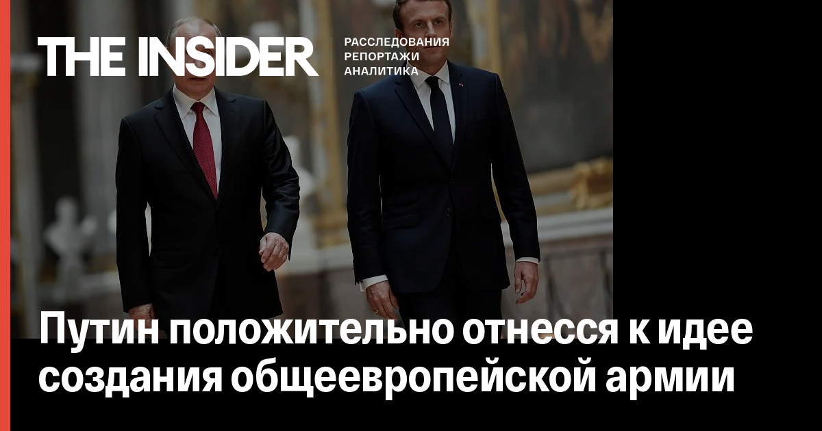 Владимир Путин положительно оценил идею создания общеевропейских вооруженных сил, высказанную президентом Франции Эммануэлем Макроном. По его словам, это пошло бы на пользу укреплению многополярного мира.