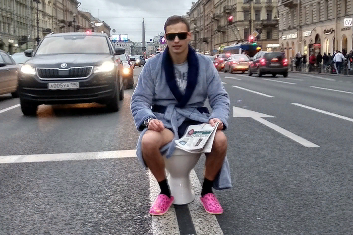 Петербуржец в халате сел на унитаз посреди Невского