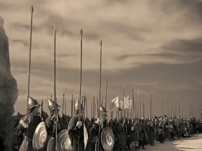 В анонсе трансляции на сайте телеканала были использованы кадры из легендарного фильма Сергея Эйзенштейна "Александр Невский", который повествует о победе древнерусского князя в "Ледовом побоище" - битве с рыцарями Ливонского ордена на Чудском озере в 1242 году.