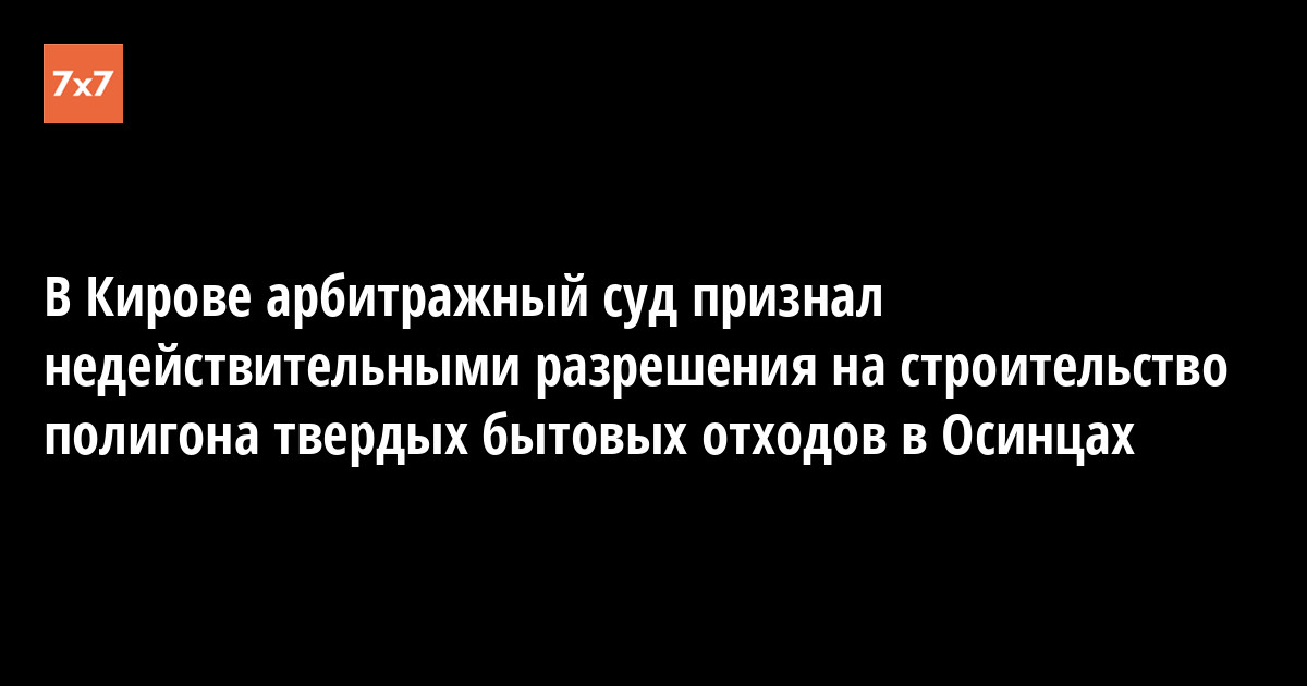 Арбитражный суд Кировской области 14 ноября удовлетворил требования аэроклуба «Добровольного общества содействия армии, авиации и флоту России» (ДОСААФ) и признал недействительными разрешения на строительство обеих очередей полигона в деревне Осинцы Слободского района. Директор «Центрального полигона» Александр Хорошавцев сообщил «7x7», что компания намерена обжаловать решение суда.