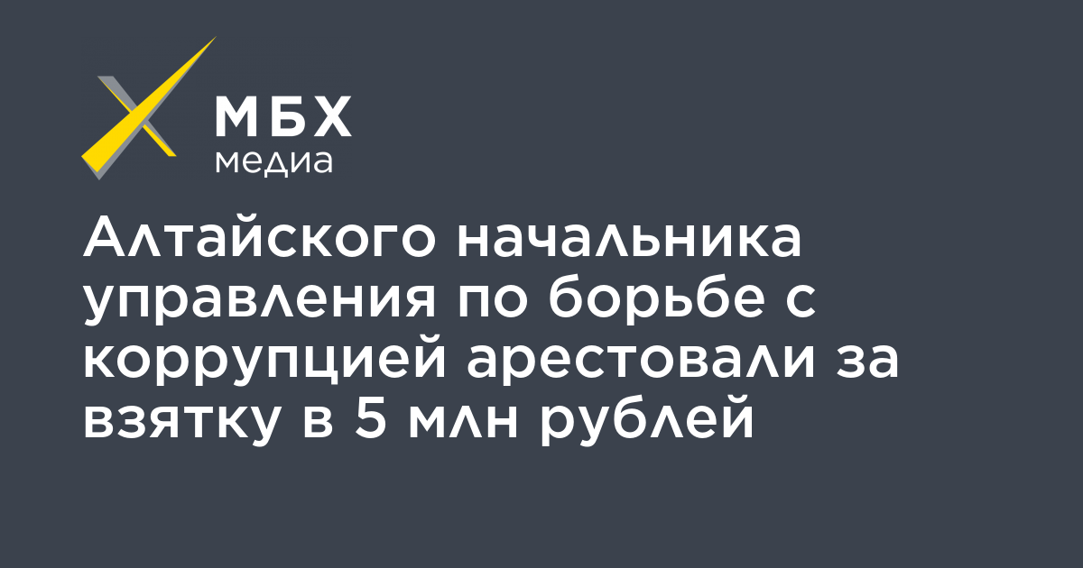 Алтайского начальника управления по борьбе с коррупцией арестовали за взятку в 5 млн рублей