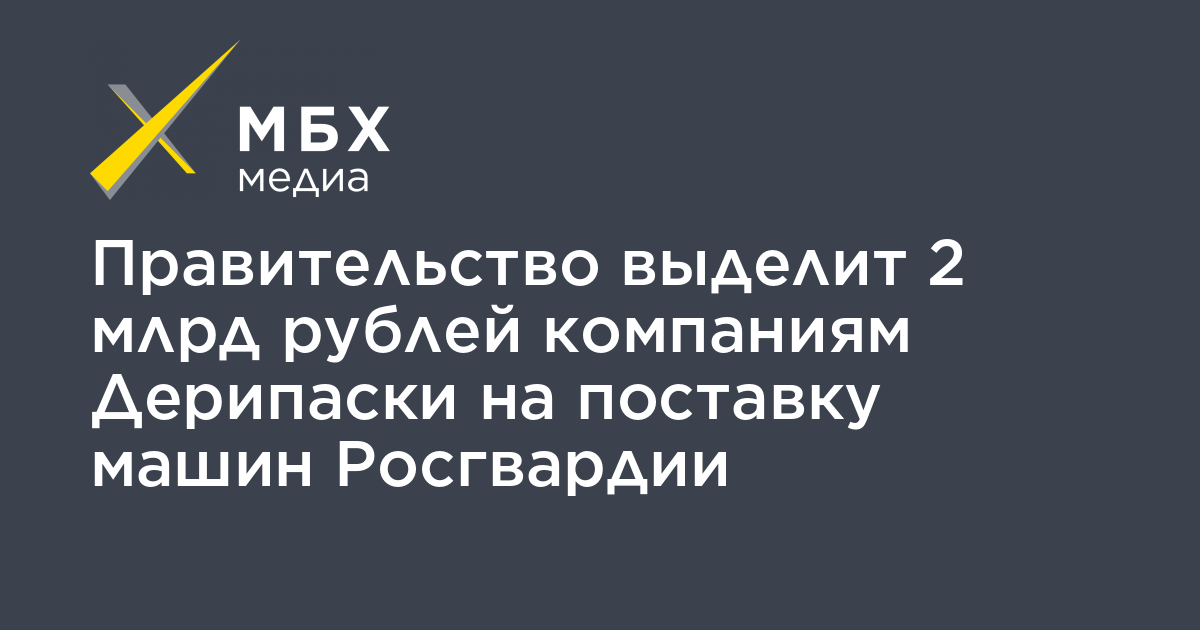 Правительство России собирается выделить из резервного фонда 2 млрд рублей двум компаниям, которые подконтрольны предпринимателю Олегу Дерипаске, на поставку около 600 автомобилей для Росгвардии, сообщает «Интерфакс» со ссылкой на постановление.