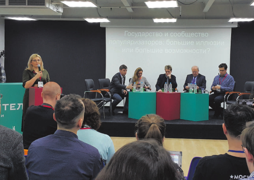 В России есть живая экосистема популяризаторов и просветителей. На ее развитие сильно влияет государственная политика через профильные ведомства вроде Академии наук, Министерства науки и высшего образования, Министерства просвещения, Министерства здравоохранения, госкорпораций и институтов развития. Иногда взаимодействие с ними бывает удачным, но чаще обе стороны недовольны друг другом, потому что между ними существует ряд противоречий. Как их преодолеть? Это стало темой панельной дискуссии «Государство и сообщество популяризаторов: большие иллюзии или большие возможности?». В ней участвовали вице-президент Российской академии наук Алексей Хохлов; член-корреспондент РАН, зав. лабораторией внегалактической радиоастрономии Астрокосмического центра ФИАН и лабораторией фундаментальных и прикладных исследований релятивистских объектов Вселенной МФТИ Юрий Ковалев; профессор РАН, вед. науч. сотр. ГАИШ МГУ Сергей Попов; канд. биол. наук, вед. науч. сотр. Института биофизики СО РАН, руководитель группы научных коммуникаций Красноярского научного центра СО РАН Егор Задереев; генеральный директор Ассоциации Science Slam Россия Арина Пушкина. Итоги дискуссии подводит ее модератор, научный обозреватель ОТР Ольга Орлова.