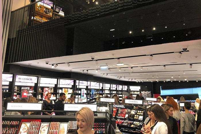 На первом этаже магазина Sephora будут продавать парфюмерию и декоративную косметику, на втором — селективный парфюм и средства для ухода за кожей. Также в магазине можно будет упаковать подарки и сделать бесплатный быстрый макияж.