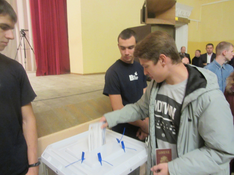 Актовый зал ВЛТУ набит до отказа! Люди даже стоят в проходах! Замечаю нескольких знакомых, моих сверстников, ветеранов Дружин охраны природы ВГУ и ВЛТИ, пришедших поддержать создание «зеленого пояса». Под благоговейное молчание в зал вносят две большие прозрачные урны для голосования!
