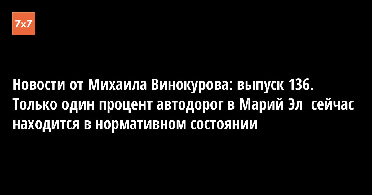 Новости от Михаила Винокурова: выпуск 136. Только один процент автодорог в Марий Эл сейчас находится в нормативном состоянии