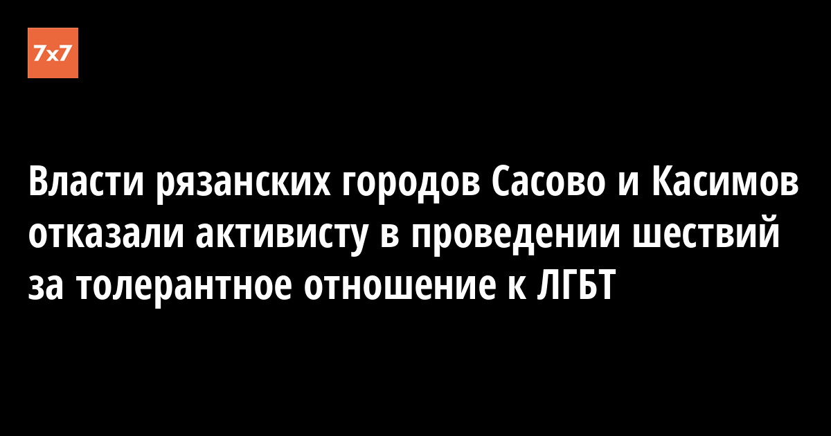Власти рязанских городов Сасово и Касимов отказали активисту в проведении шествий за толерантное отношение к ЛГБТ