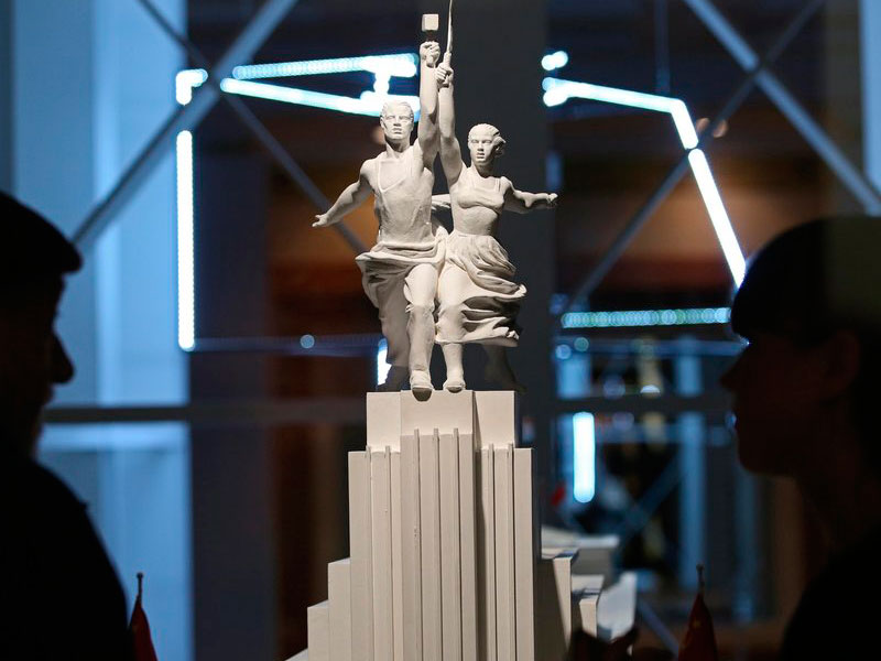 Макет памятника "Рабочий и колхозница" / АГН "Москва" / фото: Зыков Кирилл Можно еще вспомнить о вопросах обеспечения качества продовольствия и увеличения продолжительности жизни – и, конечно, качество продовольствия, о котором мы с вами уже говорили, имеет к продолжительности здоровой жизни прямое отношение. Но хочу отметить еще один важный момент: не менее прямое отношение к увеличению количества населения и положительным демографическим процессам в стране имеет и совсем иная составляющая – уважение к старости. То тотальное пренебрежение и даже хамство по отношению к пожилым людям, которое сейчас наблюдается в нашей стране – в магазинах, в банках, в учреждениях, где угодно, – влияет и на поведение молодежи, и та совсем не думает, что со временем к ней тоже станут относиться не лучше, а то и хуже.