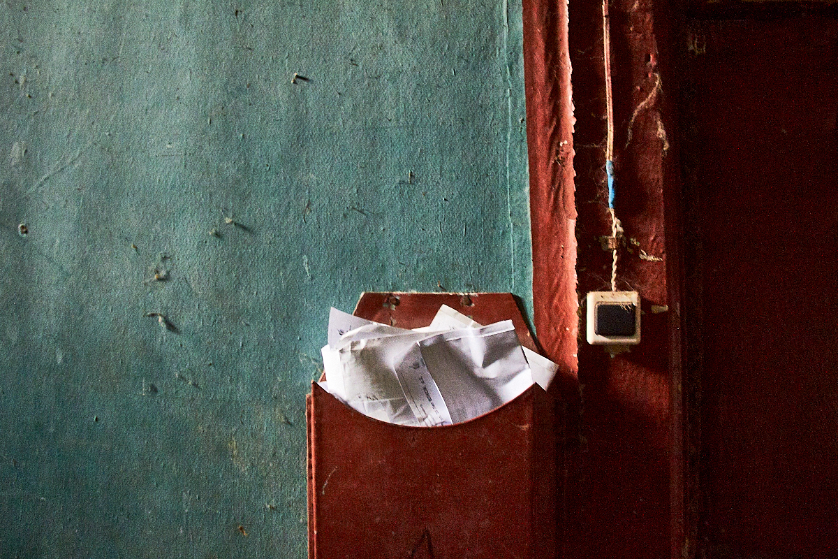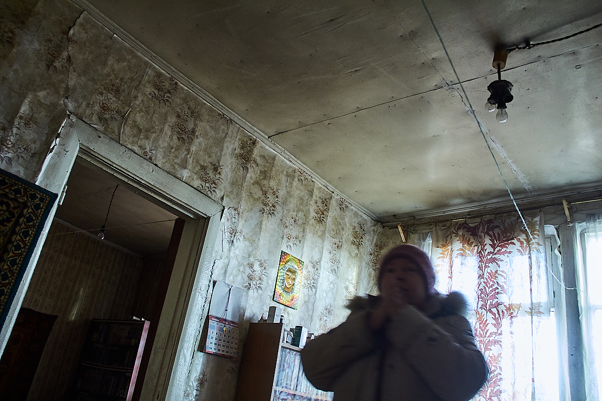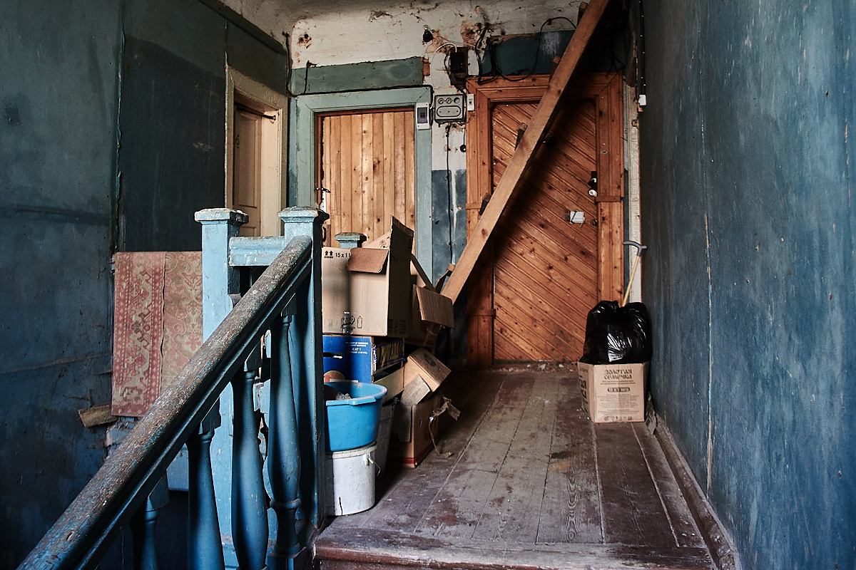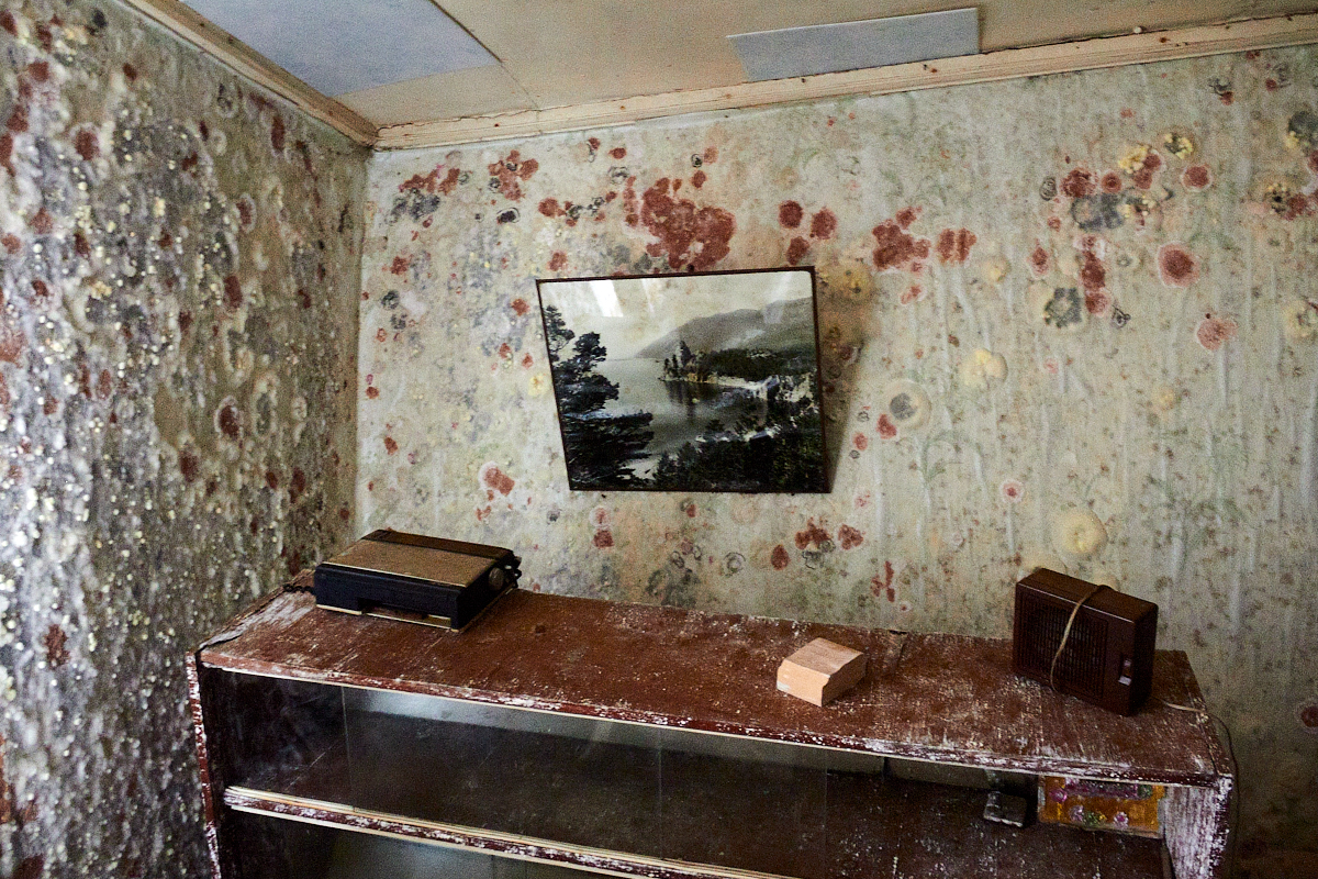 В дом сделана врезка водопровода с холодной водой, которая поступает сюда из сельской водонапорной башни. Труба проходит через соседнюю квартиру на первом этаже прежде, чем попасть в единственную жилую квартиру. Зимой женщина оставляет на ночь тонкую струйку воды, чтобы труба не промерзла, и каждые три часа ночью просыпается, чтобы вылить накопившуюся воду. Иногда труба все-таки промерзает, и тогда приходится идти в квартиру этажом ниже, чтобы полить кипятком трубу. В ней сохранилась домашняя обстановка последних жильцов. На стенах фотографии, ковер, на стуле стоит магнитофон, на тумбочке – телевизор. Все стены покрыты толстым слоем плесени, а пол уже провалился.