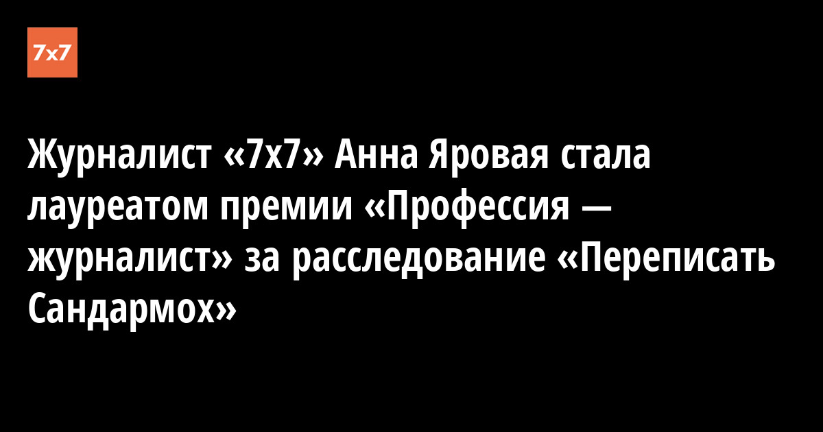 Журналист «7x7» Анна Яровая стала лауреатом премии «Профессия — журналист» за расследование «Переписать Сандармох»