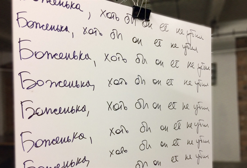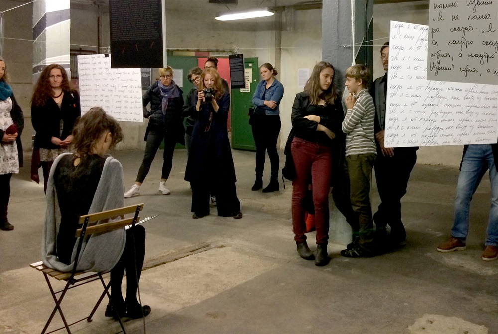 Истории женщин, ставших жертвами домашнего насилия, зачитывают в микрофон по-чешски. В оригинале они звучат на русском — это один из трех официальных языков в Приднестровье.