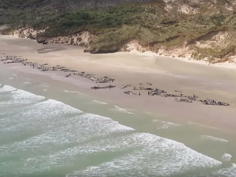 В Новой Зеландии на берег выбросились около 150 черных дельфинов. Половина погибли, остальных пришлось "гуманно" усыпить (ВИДЕО)