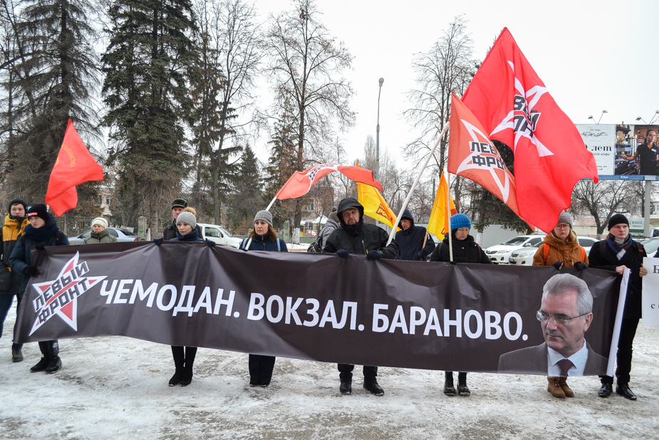 В конце митинга Сергей Падалкин сказал, что поскольку дом губернатора через дорогу от Комсомольской площади, то он надеется, что глава региона их услышит, и разъяснил смысл главного лозунга акции «Чемодан. Вокзал. Бараново»: