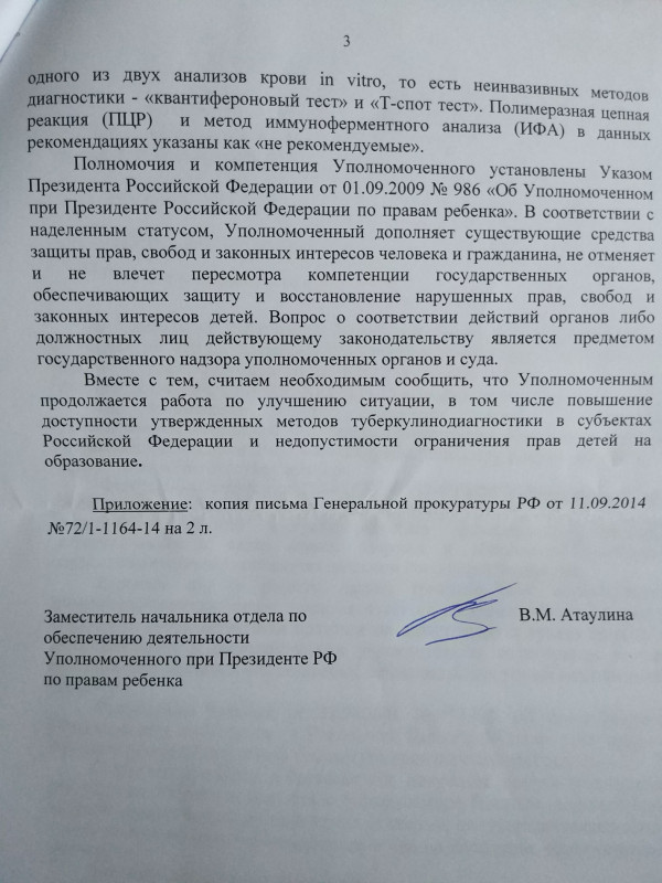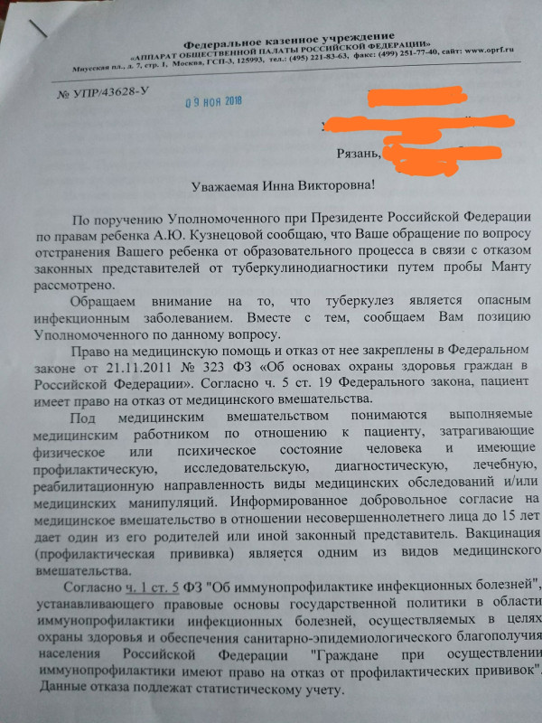 Мама попалась крепкая и грамотная, на удивление администрации Рязани. Она написала выше, выше и выше. И получила ответ Уполномоченного при Президенте РФ: