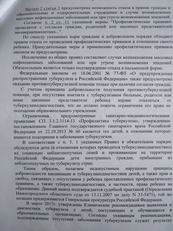 И дальше читаем: «... вправе отказаться от туберкулинодиагностики, что не должно повлечь ограничения его права на посещение образовательного учреждения...».