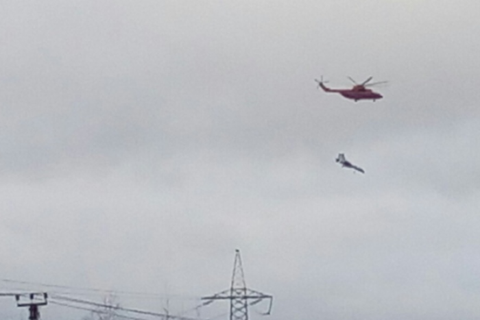 Петербуржцы заметили в небе вертолет, транспортирующий истребитель