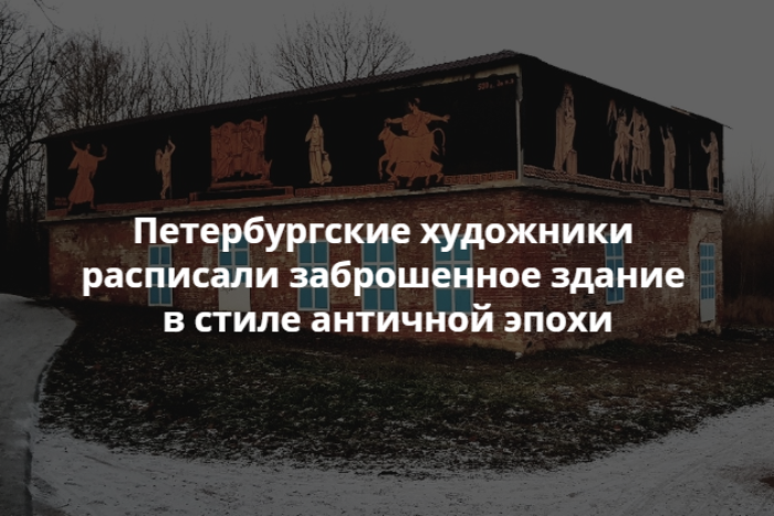 Художники из арт-группы «Явь» раписали граффити заброшенное здание на Павловском шоссе, 40. Рисунок выполнен в стиле античного искусства, он стал частью масштабного перфоманса «Созидание и вандализм».