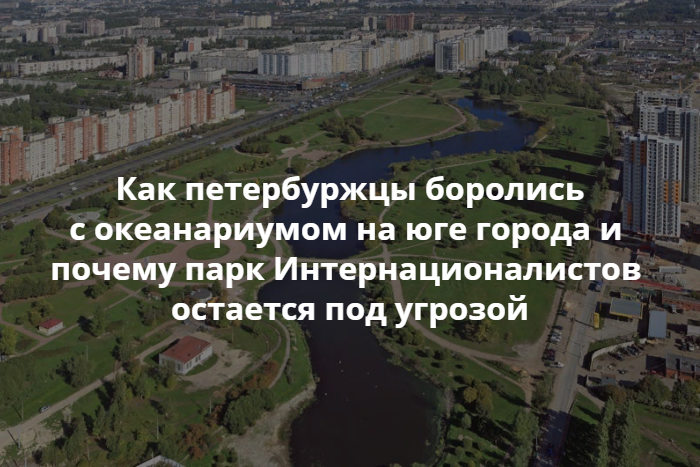 «Бумага» рассказывает, как петербуржцы боролись против океанариума, почему спорную территорию всё еще могут застроить и какие еще проекты в парке Интернационалистов Смольному и инвесторам так и не удалось реализовать.