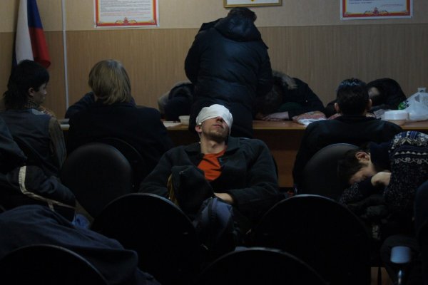 Петербург, март 2012 года. Задержанные спят на стульях в отделе полиции № 43 / Фото: Максим Томарев