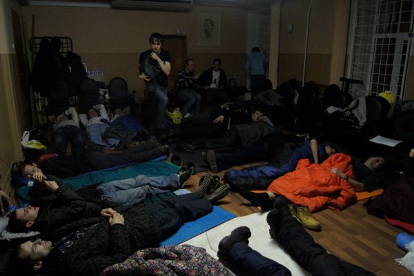 Петербург, март 2012 года. Задержанные спят на полу в отделе полиции №43 / Фото: Максим Томарев