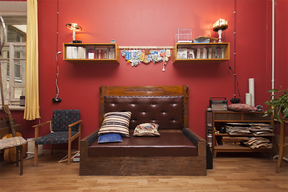 В «Квартире» многие узнают предметы из своего детства и быта, трогают их, расспрашивают, откуда какая вещь к нам пришла. Например, [в нашем интерьере] много чемоданов: кроме темы путешествий есть еще история с обэриутами. Мы помнили о человеке с чемоданом, который в 30-е годы был всегда готов к тому, что в любой момент ему позвонят в дверь, и ему придется спешно собирать вещи.