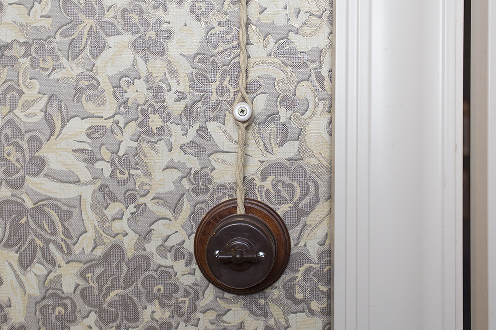 Кроме того, мы полностью поменяли полы: где-то положили линолеум со стилизацией под старый советский, где-то — паркет. Лепнина восстановлена по следам старой — еле видной. Внешней проводки здесь никакой, конечно, и близко не было.