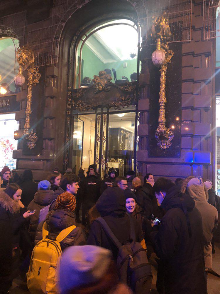 Около 150 посетителей «Дома Книги» и сотрудников офисов вывели на улицу. К зданию подъехали пожарные и ОМОН.