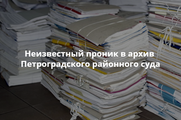 Днем 28 ноября неизвестный взломал дверь запасного выхода в архиве Петроградского районного суда и проник внутрь. Об этом «Бумаге» рассказала руководитель объединенной пресс-службы судов города Дарья Лебедева.