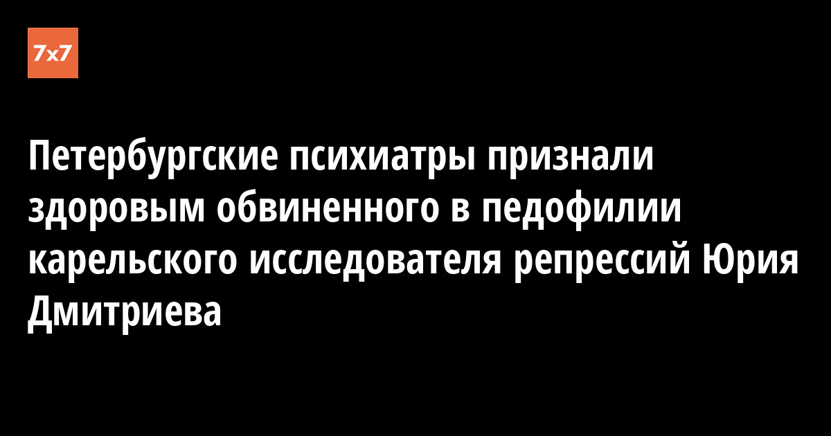 Руководителя карельского отделения общества «Мемориал» и исследователя сталинских репрессий Юрия Дмитриева обвиняли в изготовлении порнографических снимков приемной дочери. Петрозаводский суд 5 апреля 2018 года оправдал его после того, как Центр имени Сербского не нашел у него отклонений. Верховный суд Карелии отменил это решение 14 июня. Юрия Дмитриева снова задержали 27 июня. Следственный комитет возбудил новое уголовное дело по статье о «насильственных действиях сексуального характера в отношении несовершеннолетнего». По ходатайству адвоката Виктора Ануфриева оба дела объединили в одно. После обвинения Дмитриева этапировали в Санкт-Петербург для проведения психиатрической экспертизы.