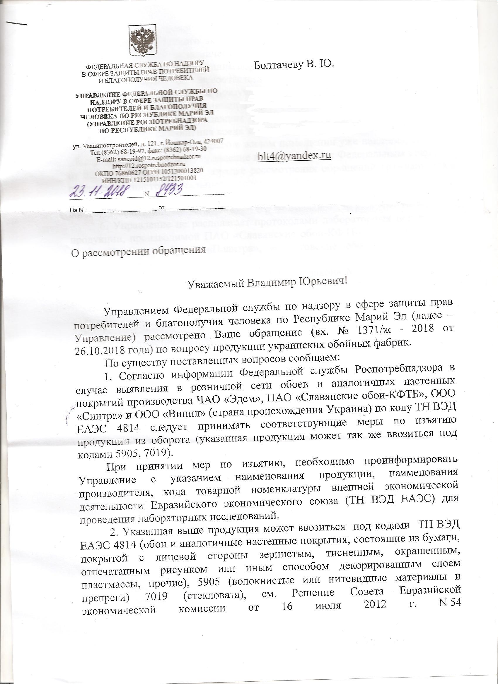 Очередной виток торговой войны с украинскими обоями поставил под удар российских предпринимателей. Государство не нашло ничего лучшего, чем наказать рублем своих граждан. Оно не закрыло границу, допустило распространение обоев по всей стране, а теперь готово выписывать штрафы за их продажу. Кстати, до 600 000 рублей на юридических лиц. С одной стороны будет положительная информация о деятельности надзорных и фискальных органов, а с другой стороны будут «без вины виноватые»? В разгар предновогоднего ажиотажа, многие предприниматели, специализирующиеся на продаже обоев, обновили свой ассортимент, и эти вложения составили немалую сумму.