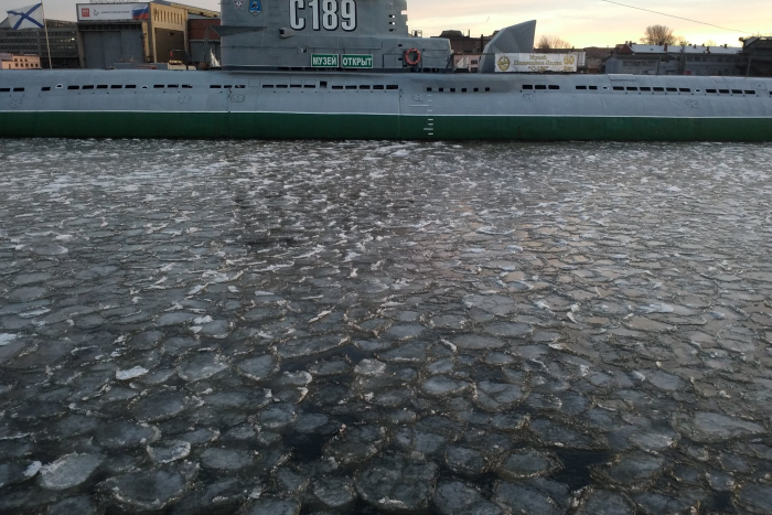 Нева покрылась маленькими круглыми льдинами. Они напоминают блинчики!