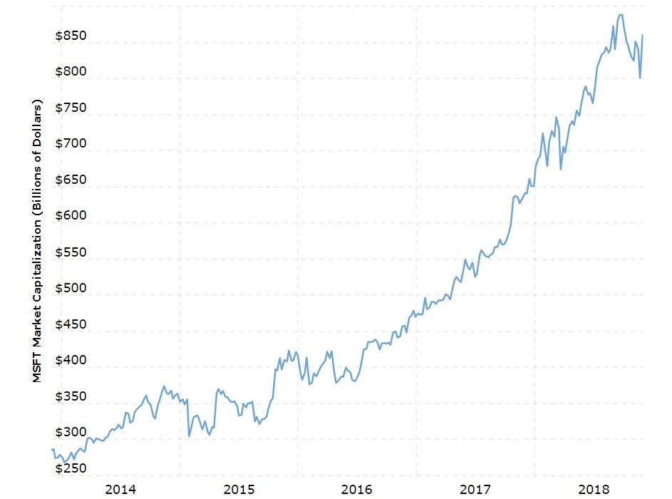 Рост капитализации Microsoft на NASDAQ, 2013-2018