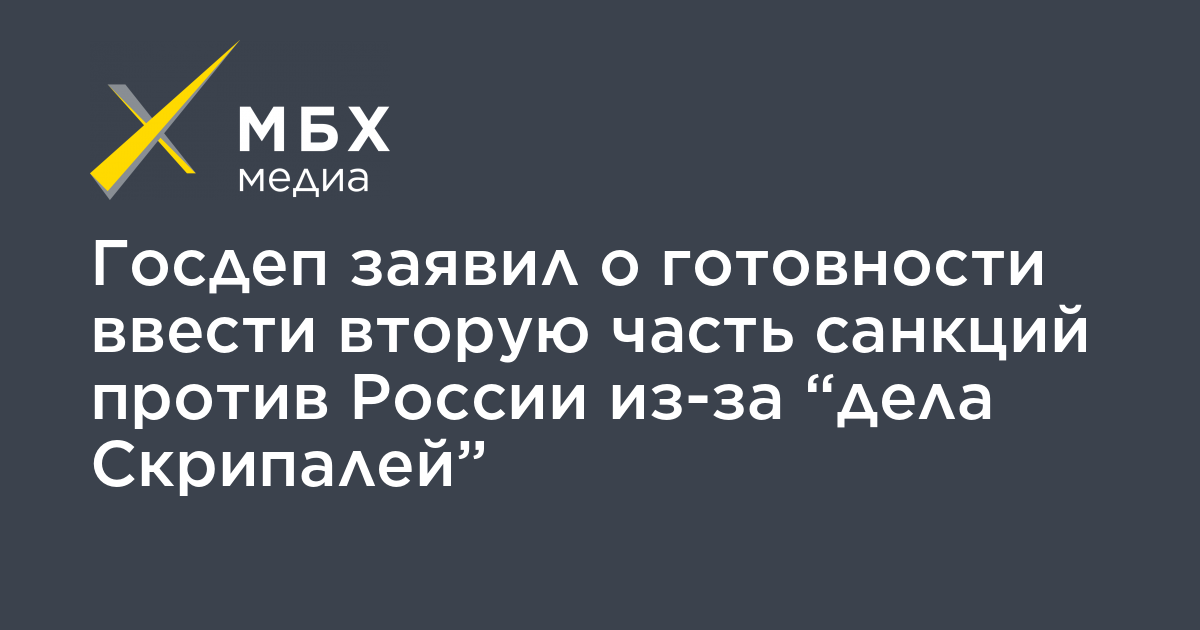 Администрация США намеревается ввести второю часть санкций против России из-за «дела Скрипалей». Об этом заявил представитель Госдепартамента, сообщает ТАСС.
