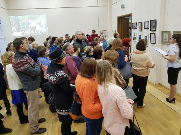 Потом я сказал несколько сумбурных слов, после чего Кристина провела очень интересную экскурсию. Зрители узнали о первых изображениях марийцев (миниатюры из русских летописей, гравюры из книг А. Мейерберга и А. Олеария (XVII в.)). Увидели подлинники и увеличенные фотокопии гравюр, литографий и почтовых карточек XVIII–XX вв.