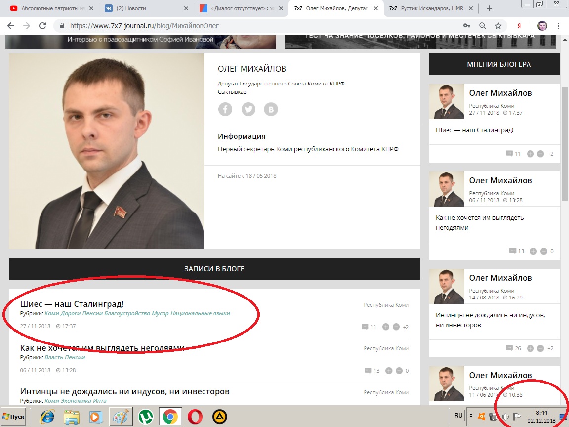 А вы видели массовые объявления о проведении митингов в Сыктывкаре 2 декабря? На странице коммуниста Олега Михайлова последний пост про то, что Сталинград стал их от 27 ноября. Никакого поста с объявлением об общей акции протеста нет. Спросите себя, почему?