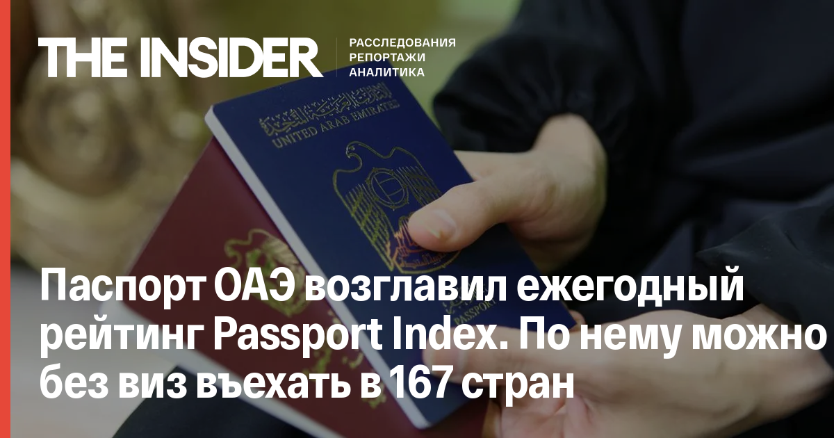 Паспорт ОАЭ возглавил ежегодный рейтинг Passport Index. По нему можно без виз въехать в 167 стран