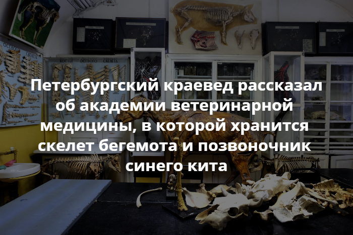 Петербургский краевед рассказал об академии ветеринарной медицины, в которой хранится скелет бегемота и позвоночник синего кита