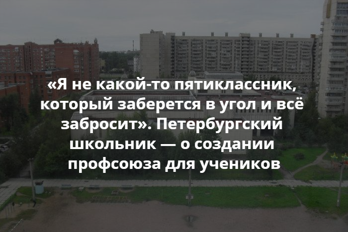 — Еще летом я начал интересоваться студенческими профсоюзами на Западе, тем, как они устроены и чего добились. Например, в некоторых учебных заведениях студенты после создания профсоюзов могут питаться почти бесплатно. Мне понравилась эта идея, и я решил сделать что-то похожее. С начала сентября я начал вести неформальные беседы со старшеклассниками, рассказывал им, как всё происходит в других странах. Так в организацию вступили первые 30–50 человек. Разброс в числах связан с тем, что у нас нет списка участников с перечислением имен и фамилий.