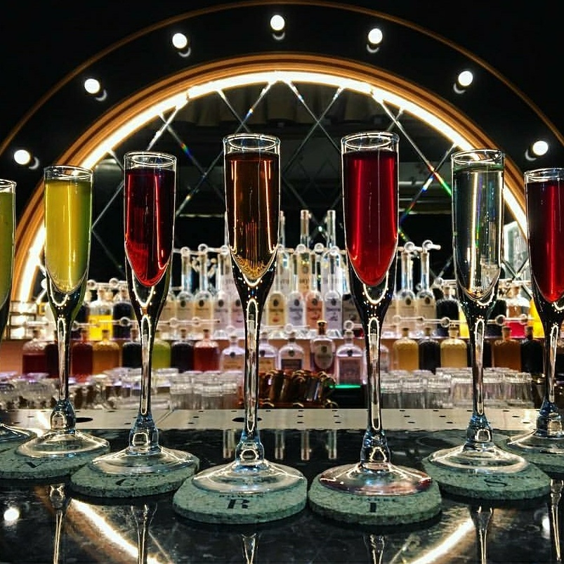 Ресторан игристых вин предлагает посетителям напитки из Испании, Италии, Франции, России и стран Нового света, например Чили, Аргентины и Австралии. В «Шампанерии» также готовят алкогольные коктейли на основе игристых вин, а шампанское добавляют в состав блюд. В меню заведения — беломорские мидии в вине с прованскими травами и хасанские дальневосточные устрицы под граните из шампанского.