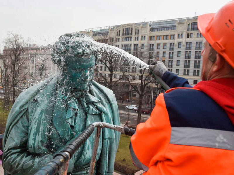 Весенняя промывка памятника поэту А. С. Пушкину / АГН "Москва" / фото: Кардашов Антон О том, в чем значение конкурса и можно ли таким способом усилить гордость россиян за свою страну, а также о том, почему переименование аэропортов потребовалось именно сейчас, когда экономическое положение многих россиян является очень сложным, с «Полит.ру» поговорил Олег Матвейчев, политический советник, эксперт СМИ, профессор Научно-исследовательского университета «Высшая школа экономики».