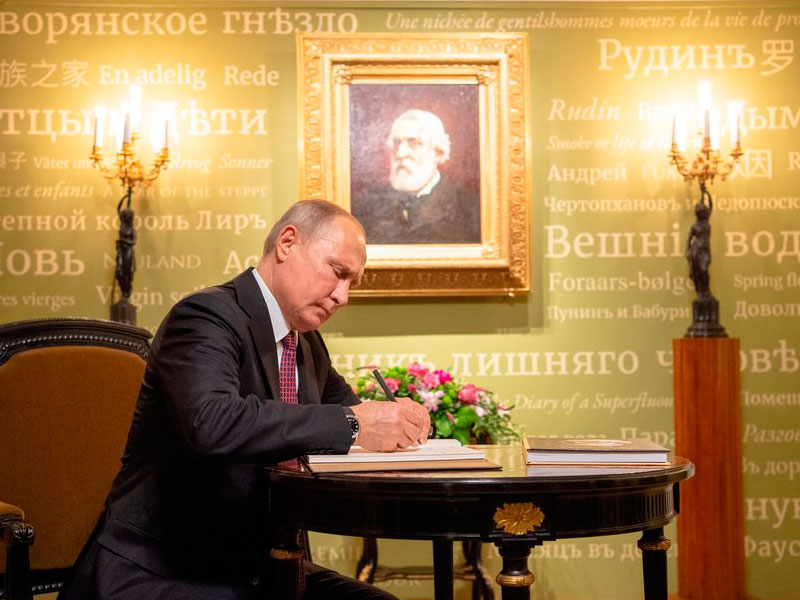 Владимир Путин в доме-музее писателя И.Тургенева / Фото: пресс-служба Мэра и правительства Москвы, Денис Гришкин Документ указывал, что присвоенное вокзалу или аэропорту имя «не является составной частью установленного географического объекта», а потому не влечет за собой изменения его наименования. В то же время правительству было поручено за 30 дней утвердить порядок использования присвоенных объектам имен, передает информационное агентство РБК.