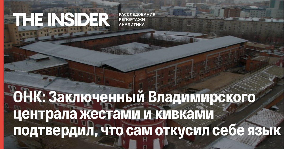 Глава общественной наблюдательной комиссии по Владимирской области Вячеслав Куликов заявил, что заключенный Владимирского централа (тюрьма №2) подтвердил, что сам откусил себе язык, передает РИА «Новости».