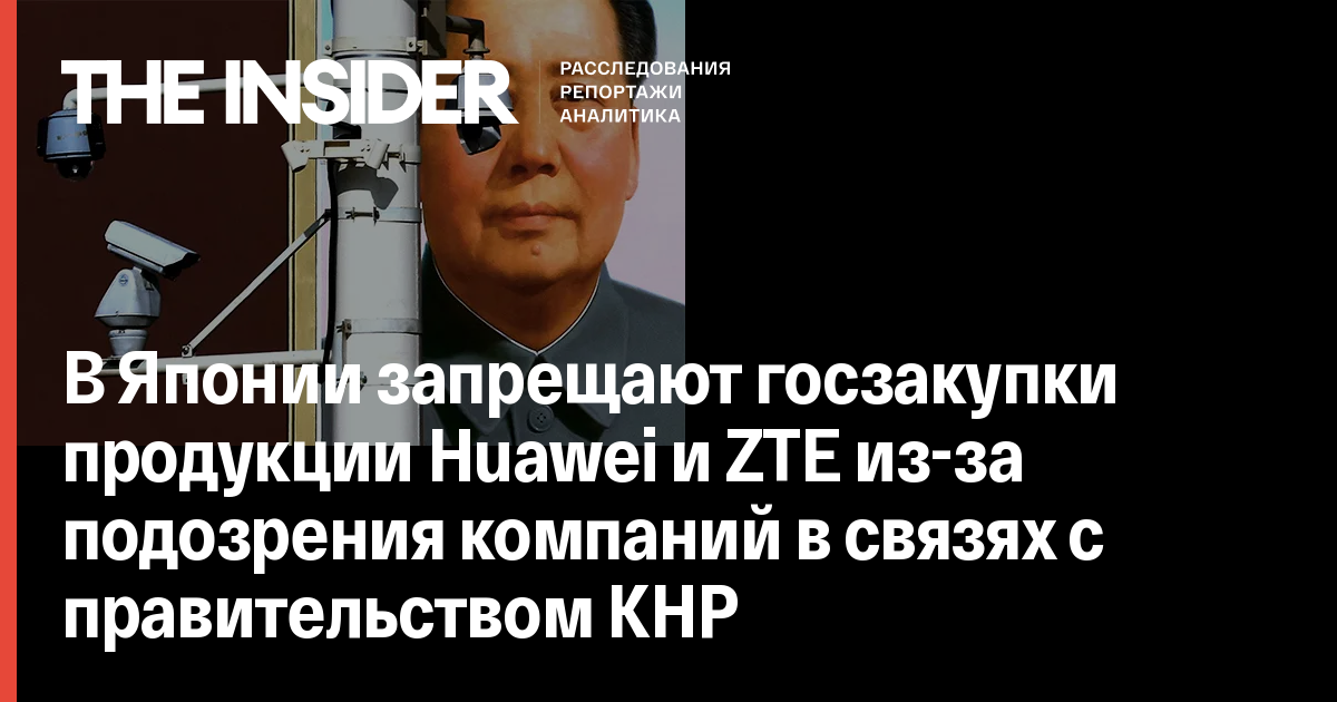 По данным источников изданий в правительстве Японии, чиновники соответствующих органов на встрече в понедельник согласятся заблокировать участие китайских компаний в государственных закупках. Оба издания отмечает, что речь идет о компаниях Huawei и ZTE.