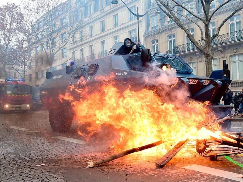 Во Франции четвертые выходные подряд проходят антиправительственные протесты, несмотря на уступки властей в виде отмены повышения топливных налогов на весь 2019 год. Как и прежде, самая многочисленная акция проходит в Париже, на улицы выведена бронетехника, полиция применяет против манифестантов более сильный слезоточивый газ, проходят массовые задержания.