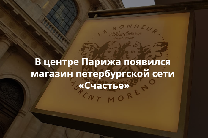 В центре Парижа открылась первая лавка петербургской сети магазинов-кондитерских «Счастье». Она расположена недалеко от станции метро «Лувр — Риволи». Об этом сообщается в социальных сетях «Счастья».