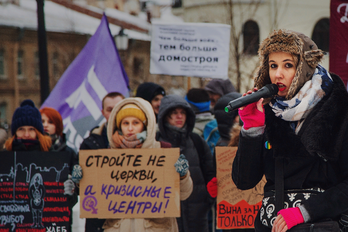 «Декриминализируйте репост, а не побои»: в центре Петербурга прошел митинг против насилия над женщинами